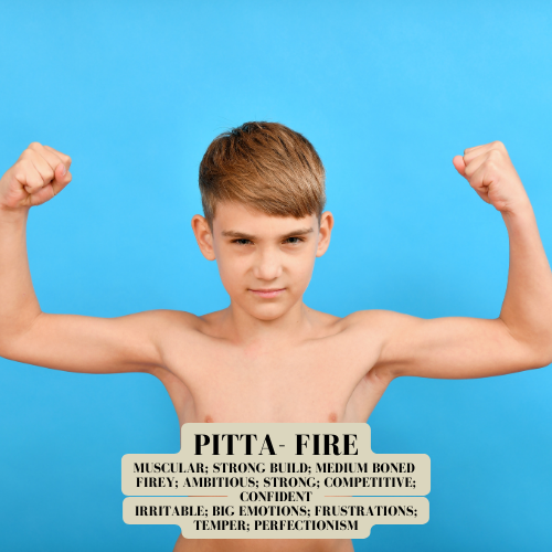 You know your child is more “Pitta” if they are medium boned, more muscular and stronger build. Whilst younger Pitta types may lose their temper, have tantrums, and possess big fiery emotions, they can also be competitive; great at team and individual sports; confident and driven. If they are desparate to do a cartwheel, they are the ones in the park practicing a thousand of them a day until they nail it. These guys don’t give up. To bring the positive traits out, dosha balancing is required.