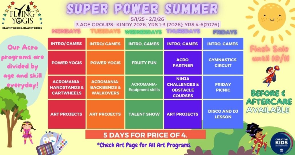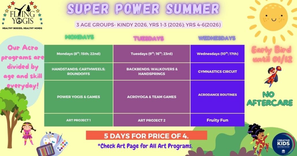 Looking for engaging Sydney school holiday activities this winter? Flying Yogis’ Spring Holiday Camps in Bondi Junction combine yoga, acrobatics, and creative arts for an unforgettable experience that keeps kids active, inspired, and having fun during the July break.